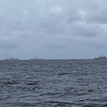 【杀鸡焉用牛刀?055大驱现身仙宾礁海域】8月26日,菲律宾海岸警卫队在仙宾礁附近海域,拍摄的中国海军055万吨大驱,已经抵达仙宾礁附近海域阵位。这意味着,中国海军055万吨大驱现身仙宾礁附近海域。